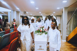 Gemma's last journey started from her home, in a white horse & carriage, with horses feathered with both Grenadian & Ghanaian colours to support the countries flags the horses were drapped in, followed by white limosines, with family all in white.